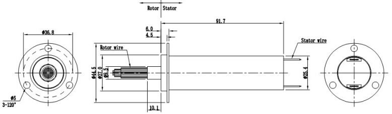 A. 主體端面∮110圓面上3個M3×8的孔與設(shè)備固定部分相連,用3個M3(最大外徑)的螺絲安裝好定子