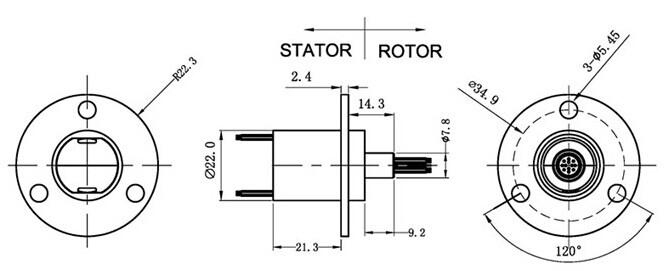 A. 主體端面∮110圓面上3個(gè)M3×8的孔與設(shè)備固定部分相連,用3個(gè)M3(最大外徑)的螺絲安裝好定子