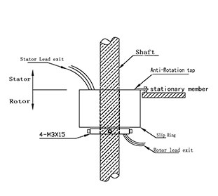CAUTION: Because of possible geometric mismatching between the customer's application and the slip ring,'hard mouting'of both ends of the slip ring(i.e.securing the rotor and stator such that there is no floating during operation) is not recommended and may cause premature failure.