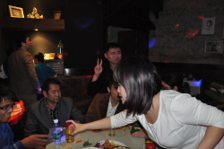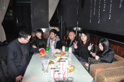 晚飯過后,KTV走起,奔向松山湖畔“巨細吧”,狂歡party開始。在“巨細吧”里面,大家盡情揮灑青春,K歌、猜拳、喝酒、蹦迪、跳舞、聊天、嬉戲……好一派狂歡夜的景象,一向嚴肅的總經理也K歌了一首《敖包相會》。
